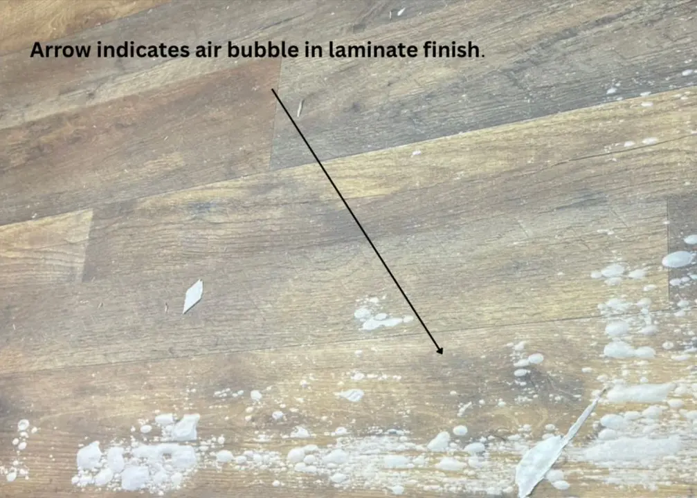 • Warping, blistering, or delamination in urea overlay and decorative papers